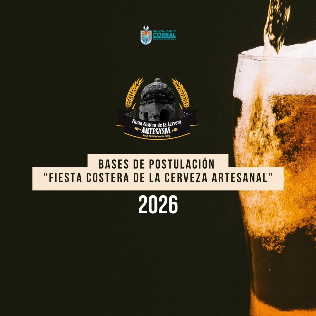 La Ilustre Municipalidad de Corral, representada por su Alcalde Don Claudio González Navarro, mandata a la comisión de la fiesta de la cerveza, para convocar a emprendedores de la comuna de Corral y cerveceros de la región de los Ríos, a participar de la “FIESTA COSTERA DE LA CERVEZA ARTESANAL 2026”, con el propósito de generar actividades que fortalezcan nuestras tradiciones, economía y participación local y regional.